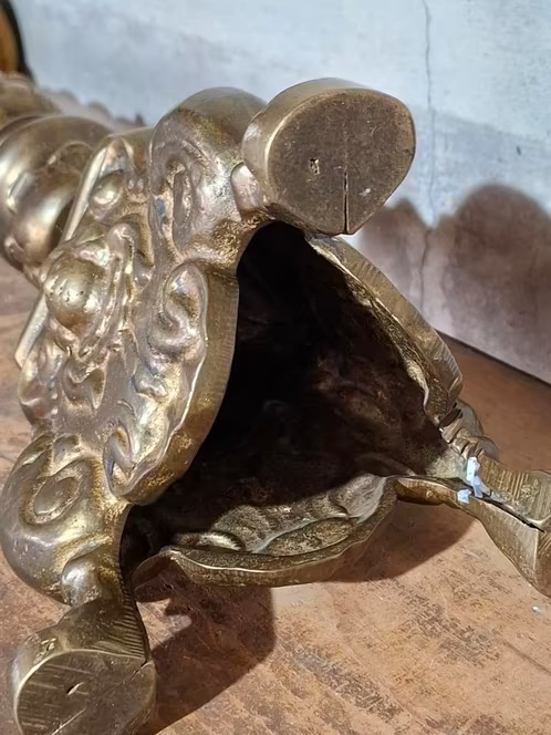 Oude antieke zwaar koperen kerkkandelaar met prachtig patina.
