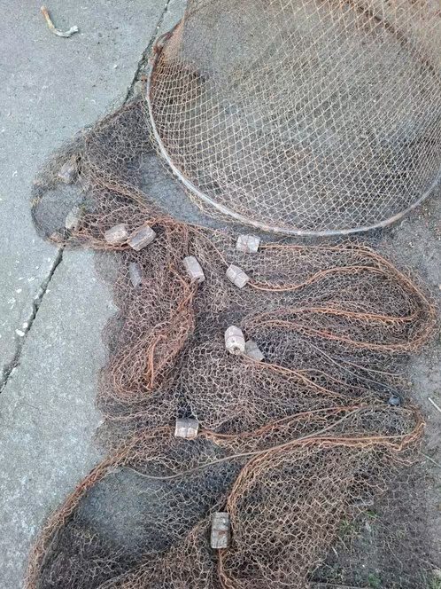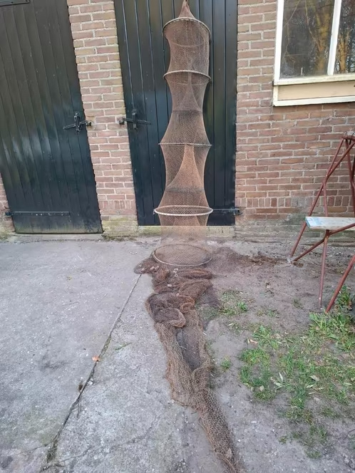 Oud Vintage Katoenen Fuik met Houten Hoepels met Drijvers